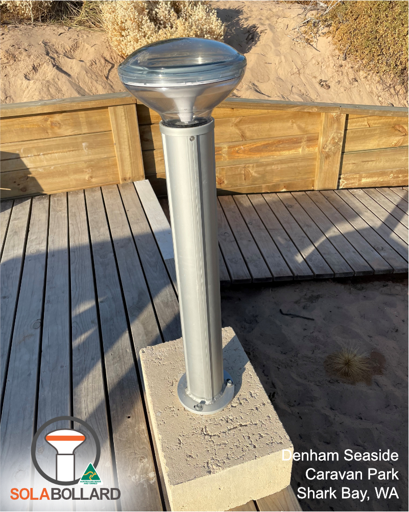 Solar Bollard on Moveable Block at Denham Seaside Caravan Park, Shark Bay, WA
