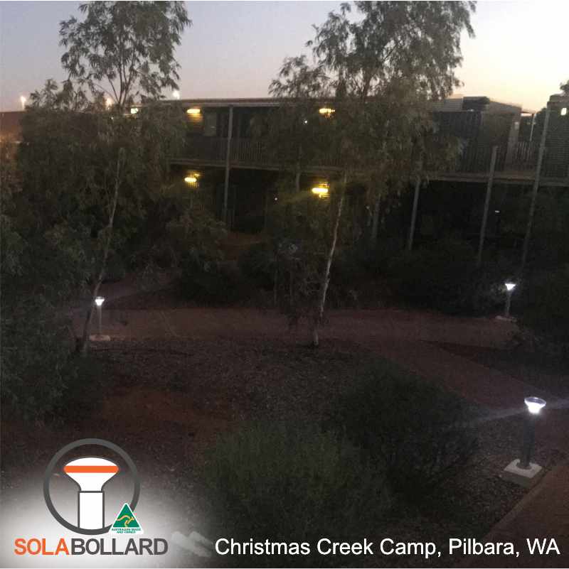 The soft, natural white light from the Solar Bollards placed as waypoint lighting through the mine camp at Christmas Creek creates a labyrinth of safety and security.
